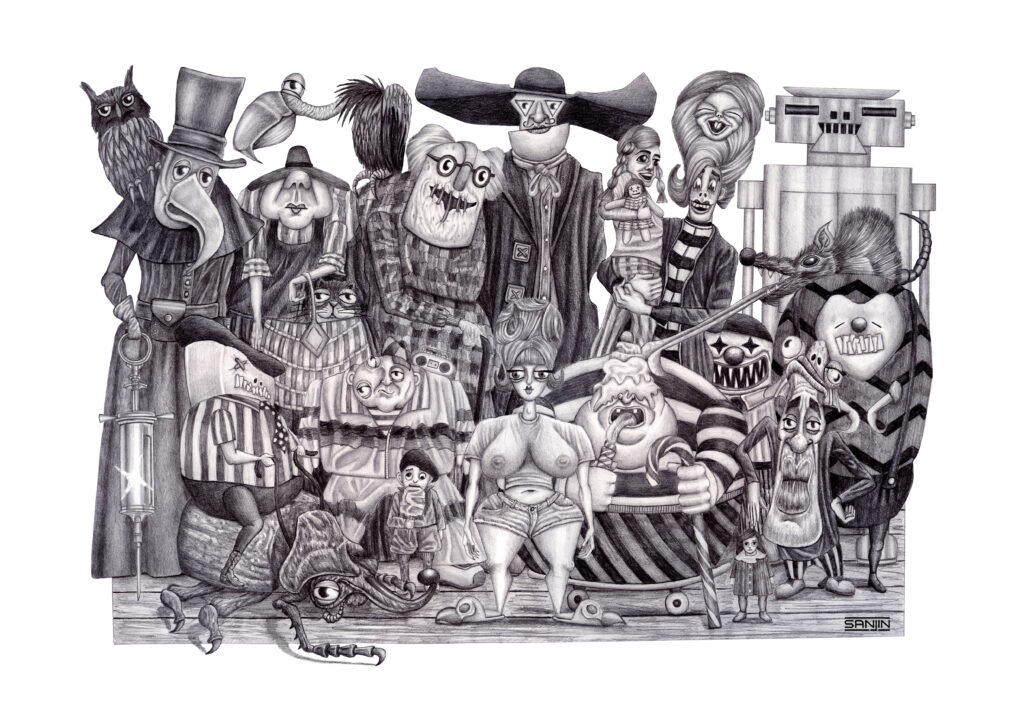 Familija šećerne vune, Olovka na papiru i digitalna obrada u Photoshopu, 2023.