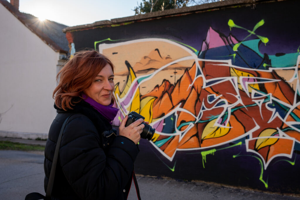 Iām Marina ÄapiÄ, better known as Marina Mimoza. I work in cultural production and the management of culture, mostly through the Street Art Festival. Iām the Festivalās director, officially, and Iām also the president of our NGO, āRezon.ā And behind me is a team of people whoāve been working on this idea for years.